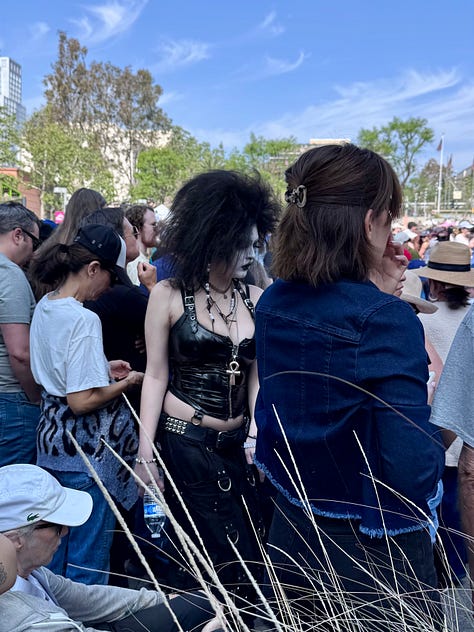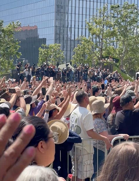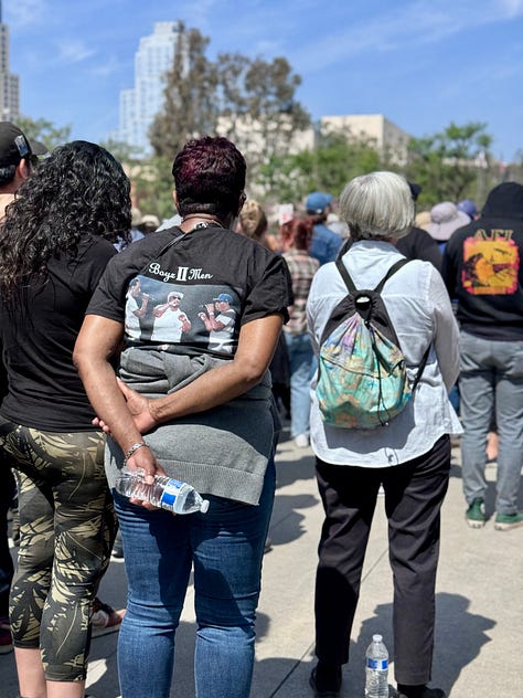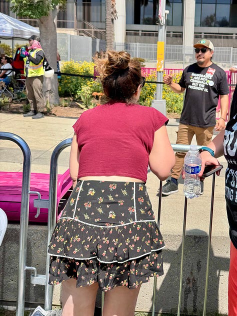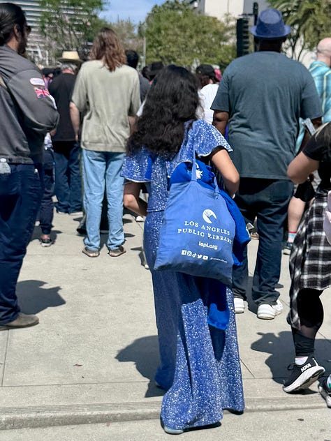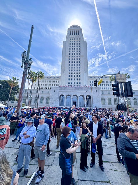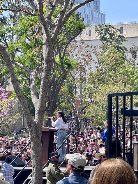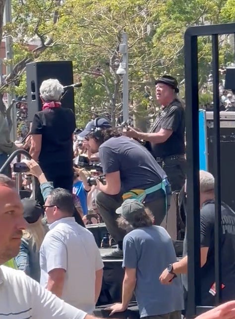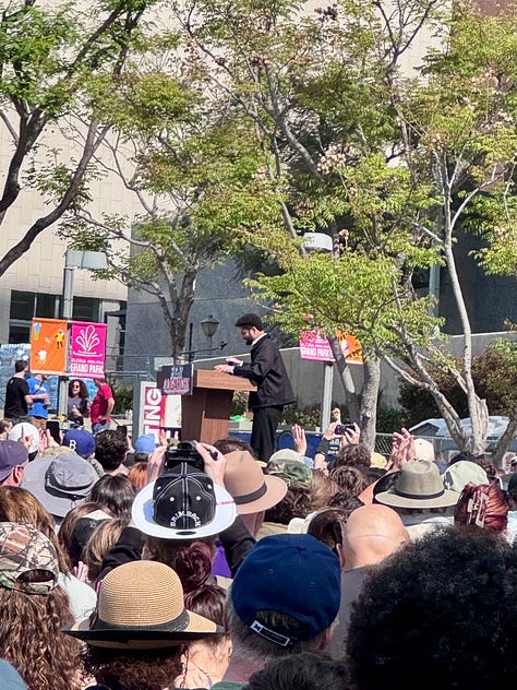 The music from the many local artists, plus Niel Young, Joan Baez, and Maggie Simpson, was fun and uplifting. The speakers were inspiring and powerful, including Eunisses Hernandez, Maxwell Frost, and Jimmy Gomez.