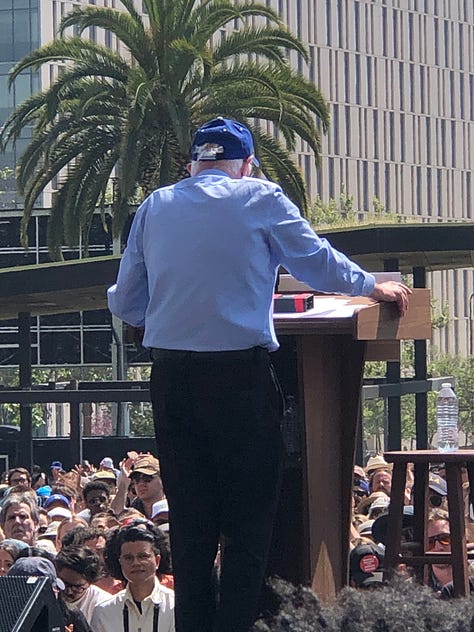 As you all know by now, I’ve attended most of the protests, in whatever city I’m in, since January 2017. But yesterday was my first Bernie rally. I got into some civilized debates with a couple Bernie Bros. But for the most part, the feeling was united against the criminal Trump regime, and the message was, “We're going to sing and dance our way to victory, against hatred and divisiveness.”