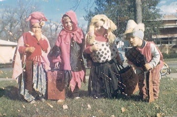 We also had a ton of first cousins who lived in the neighboring suburbs west of Chicago. My mom was so creative and always made everything fun. On Halloween she crafted homemade costumes using those face paint wax crayons and old clothes to dress us up as gypsies or whatever her whim.