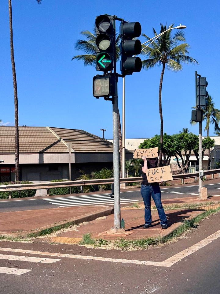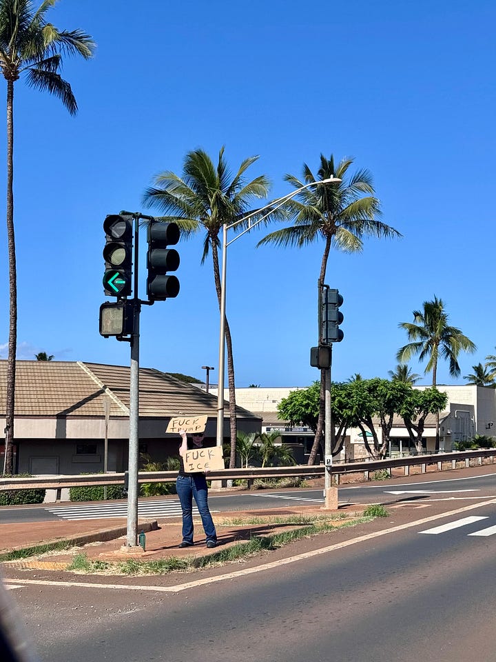 Yesterday protests broke out across America just as we landed in Maui, so I’m missing out on mainland activism. But God bless this gal we passed on our way to the condo. I’m planning on making a poster and joining her at some point.